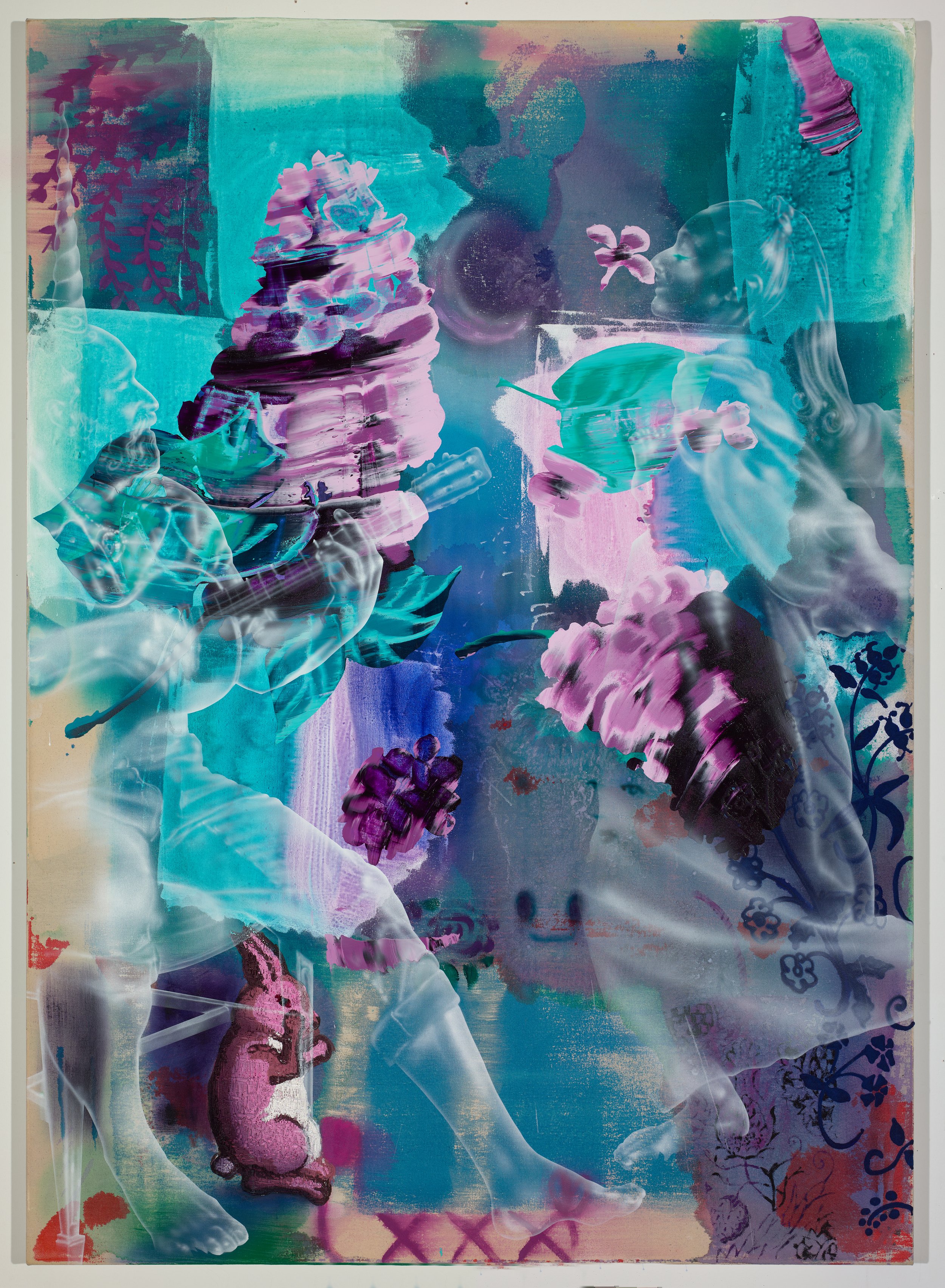 Acrylic, glitter, and flocking on canvas